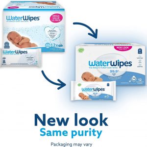 WaterWipes Plastic-Free Original Baby Wipes, 99.9% Water Based Wipes, Unscented & Hypoallergenic for Sensitive Skin, 720 Count (12 packs)