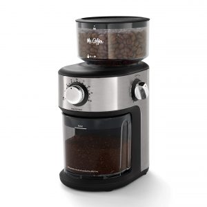 Mr. Coffee Burr Coffee Grinder, Automatic Grinder with 18 Presets for French Press, Drip Coffee, and Espresso, 18-Cup Capacity, Stainless Steel