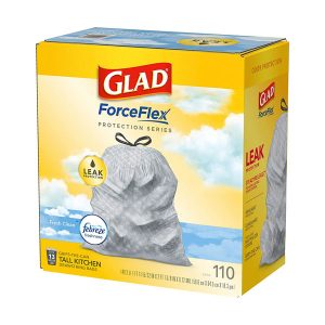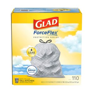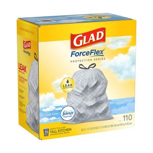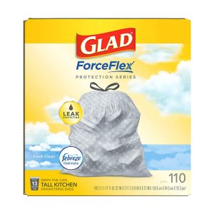 【Flash Sale + Free Shipping】Glad ForceFlex 110 Count 13 Gal Tall Kitchen Drawstring Trash Bags – Fresh Clean Scent with Febreze