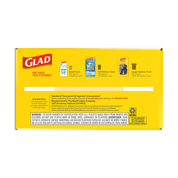Fight nasty kitchen odors with Glad trash bags and the steady release of Febreze freshness. Glad Tall Kitchen Drawstring Trash Bags are designed with ForceFlex technology to give extra flex as it expands around sharp edges and heavy loads, so you can pack it in while resisting tears, rips and punctures. A steady release a Fresh Clean scent with Febreze Freshness keeps your kitchen pleasantly fresh smelling with long lasting odor control. Let the stretchable strength of Glad handle all the messes our busy daily life can throw at it and then some. With double-sided seals and a reinforced bottom, these bags are designed with RipGuard and LeakGuard technology to prevent seepage of liquids and keep trash contained. The durable Grips-The-Can Drawstring ensures a tight grip on the trash can to keep it in place. Take the trash to the curb with no fear of leaks and tears, and no frustration. Keep your kitchen smelling clean with the stretchable strength of Glad. Comparable to simplehuman H, Q, P, K, M, N, J can liners and fit with simplehuman 58L Rectangular Dual Compartment Kitchen Step Trash Cans, 50L Rectangular Kitchen Step Trash Cans, 40L Slim Kitchen Step Trash Cans, 45L Rectangular Kitchen Step Trash Cans, 45L Slim Kitchen Step Trash Cans.