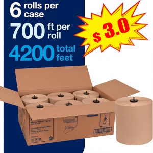 Matic Paper Hand Towel Roll Natural H1, Universal, 100% Recycled Fiber, 6 Rolls x 700 ft, 290088