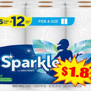 Sparkle® Pick-A-Size® Paper Towels, 6 Double Rolls = 12 Regular Rolls