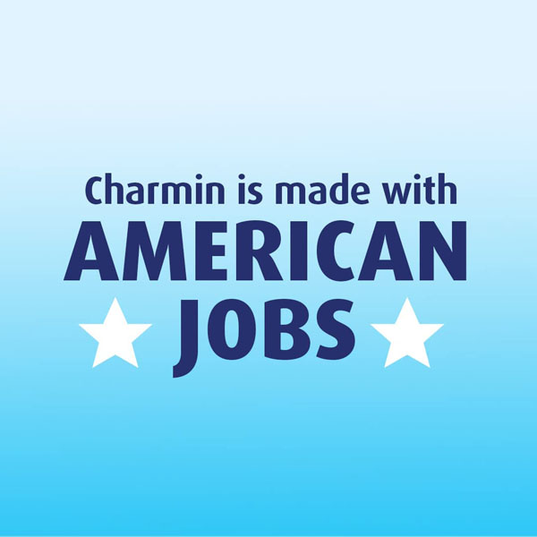 Made with American JobsCharmin is proudly manufactured in the USA. 100% of Charmin products are made with American jobs that support thousands of employees and their families. |