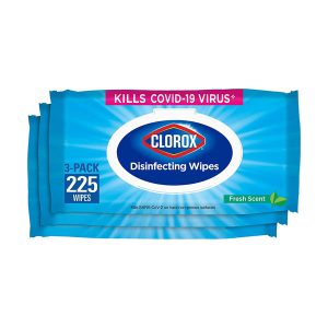 Clorox Disinfecting Wipes come in convenient, easy to pull dispensing packs make cleaning easy. These flexible packs allow you to easily dispense, clean and disinfect while storing, stacking or taking on the go is a breeze. Clorox Disinfecting Wipes clean, disinfect, deodorize and remove allergens for 5x cleaning power* and leave a lemon scent. Disinfecting Wipes clean and disinfect with antibacterial power that kills 99.9% of viruses and bacteria that can live on surfaces, including COVID-19* Virus, staph, E. coli, MRSA, salmonella, strep and Kleb. These all-purpose disposable wipes remove common allergens, germs and messes on surfaces like kitchen counters, bathroom surfaces and more and can prevent the growth of bacteria* for up to 24 hours. Wipes are safe to use on finished wood, sealed granite and stainless steel. Disinfecting Wipes are also great on non-food-contact surfaces in the home, office, classroom, pet area, dorm and locker room. Clean with bleach-free wipes to keep dirt and germs away. You’ll get two 75 count pouches of crisp lemon scented wipes and one 75 count pouch of fresh scented wipes. *5x cleaning power: cleans, disinfects, deodorizes, removes allergens, leaves a scent, removes dirt, removes grime. Kills COVID-19 virus: kills SARS-CoV-2 on hard, nonporous surfaces. Use as directed. Prevents the growth of bacteria: odor causing bacteria on non-food contact surfaces. Allow product to air dry.