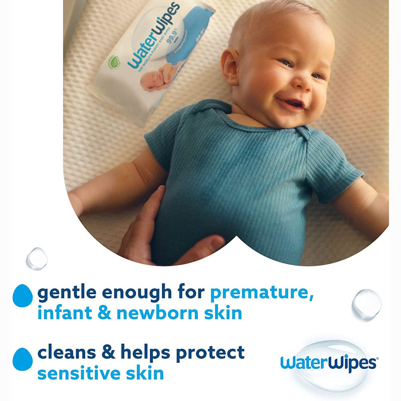 Families can trust WaterWipes Original baby wipes 300 count (5 packs) to gently clean and help protect sensitive skin. Our new Plastic-Free Original wipes are the same formula and purity as before, with just 2 ingredients: 99.9% ultra-purified water and a drop of fruit extract to naturally cleanse the skin. Our purified water goes through a 7-step process that makes it purer than tap, boiled or medical grade water to provide a deeper, more effective clean.* Our WaterWipes are unscented, hypoallergenic and gentle enough for the most sensitive premature, infant and newborn skin. WaterWipes was created by a father, inspired by a daughter. Our founder developed WaterWipes after his newborn suffered from bad diaper rash, and he realized skin this pure needs care that’s just as pure. So, he created the world’s purest wipes to help protect his child and help other parents do the same for theirs. Now families around the world trust pure and simple WaterWipes for all kinds of messes. These plastic-free wipes are gentle on the planet, and they’re clinically proven to be kind on baby’s skin, giving parents the confidence to help protect their children in the purest way possible. *When compared to cloth and water.