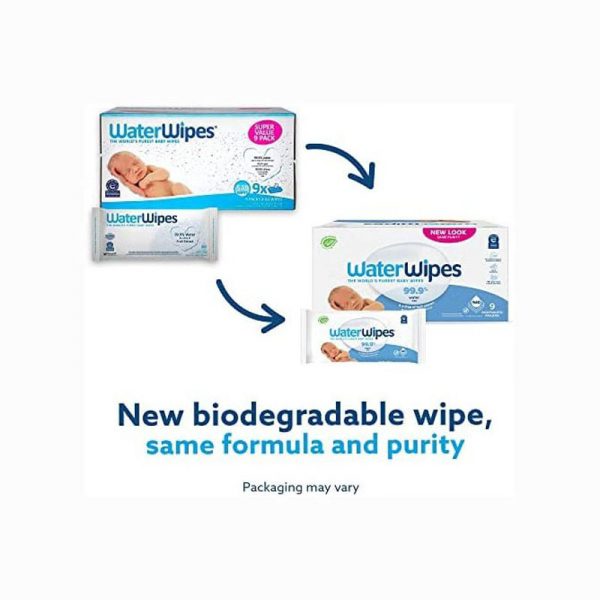 WaterWipes are the first baby wipes to be 100% biodegradable and plastic-free. They’re the same formula and size as our previous wipes.