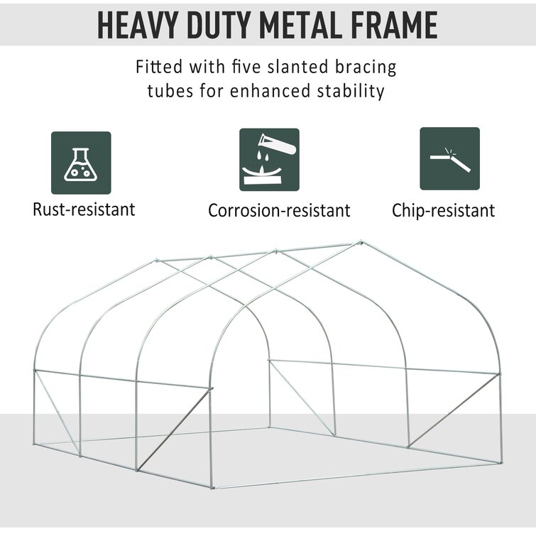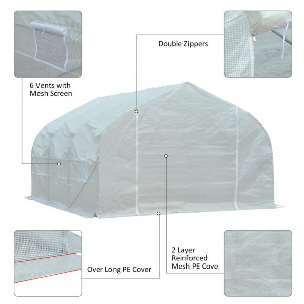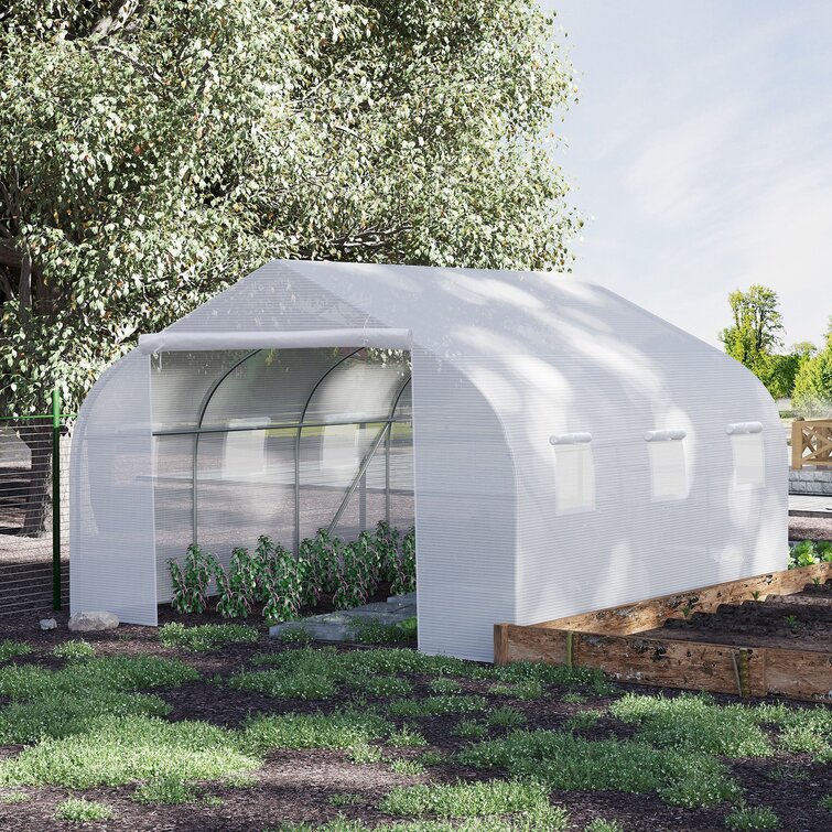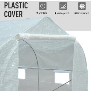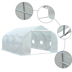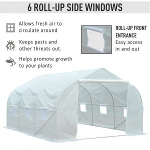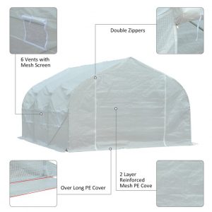 This 11′ X 10′ Portable Walk-In Garden Greenhouse is perfect for the home gardening enthusiast who is looking for a way to stay in the soil all year-round. It offers all the protection your plants need to thrive without having to spend a great deal of green yourself. The powder-coated steel tube frame and UV-resistant 20cm PE mesh cloth cover provide great protection. A zippered door provides a tight seal while also allowing quick in and out access. 6 Transparent windows allow natural lighting to pass throughout the entire structure. Easy to assemble and easy to move or takedown, their Outsunny greenhouse is the ideal solution for keeping your plants happy and healthy throughout the year.
