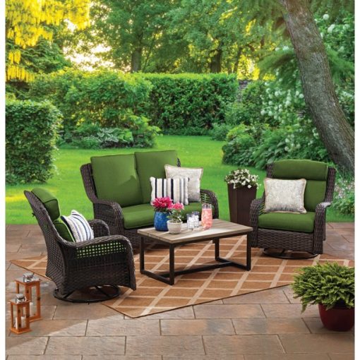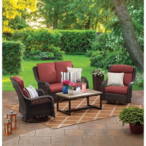 4-Piece Outdoor Wicker Swivel Chair Conversation Set