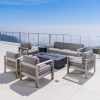 Create a relaxing and attractive environment with the Highland Point Fire Pit Seating Set. It is highlighted by a seamless fusion of modern aesthetics with a traditional flair providing, a casual yet elegant oasis for your outdoor space. Crafted of high quality aluminum chair frames and heavy-duty steel firepit base powder coated with a hand applied striking finish, it complements any decor. Included are seat cushions made of premium polyester fiber batting wrapped around a high resiliency foam core. The cushions are part of the Choose Your Own Color program, meaning they come bare without slipcovers, so you can choose the tones that best fit your style.