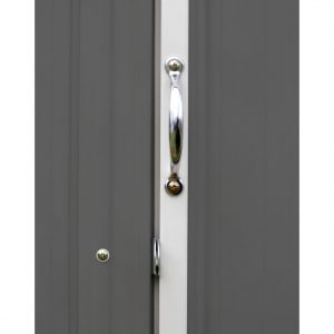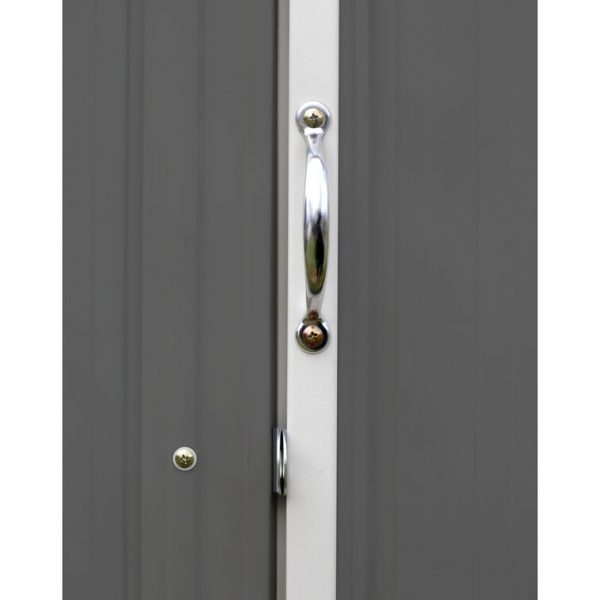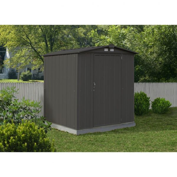 The size shed is not only a tougher shed with faster assembly, it??s a more modern and attractive take on outdoor storage sheds, too! The size shed is available in an updated color pallet that makes it a modern and stylish storage solution for the backyard, patio, and garden areas. The size shed doesn??t just look better; it offers better storage space, as well. The size shed??s attractive swing door design allows for easier access to your items and features a heavy-duty framed-out design. The doors are set on 3 hinges for extra durability. The size shed is a strong and modern alternative to your standard backyard shed, and the next step up in steel shed assembly and design.