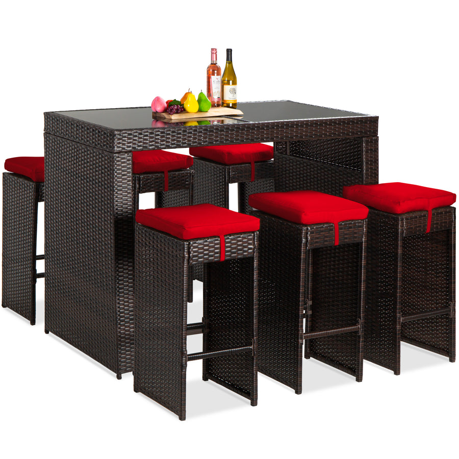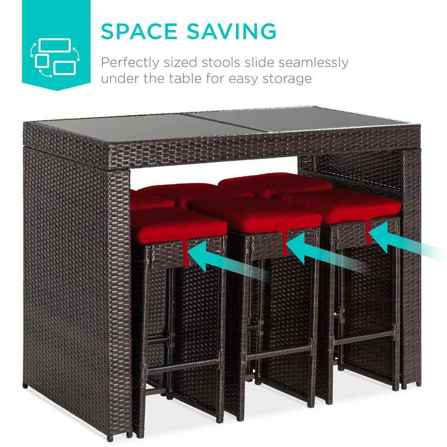 - SPACE-SAVING DESIGN: Slide the six stools under the table when not in use to keep your outdoor space organized and ready for entertainment