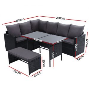 8 Seater Wicker Outdoor Dining Sofa Lounge Set – Black