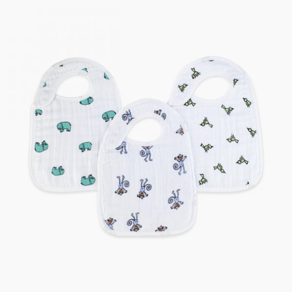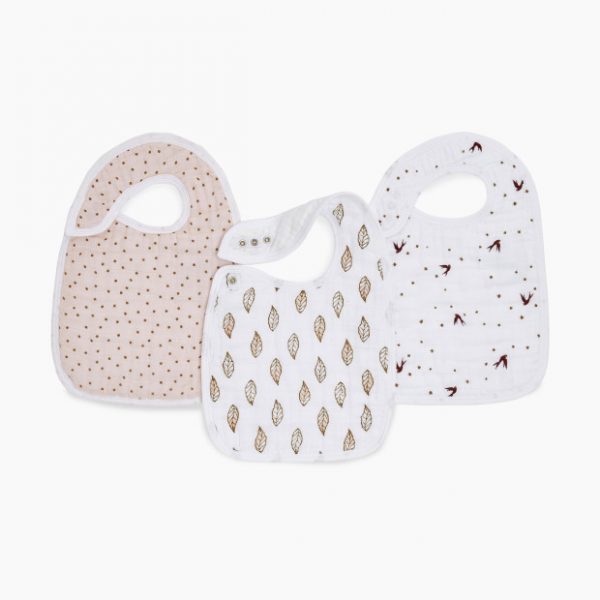 These aden + anais bibs are incredibly soft and they get softer with each wash (just like their swaddles). The fabric absorbs liquids instead of letting it slide off the bib to create more mess (a common problem with bibs). Also these are big enough to cover a larger chest and tummy area than your typical bib. However they??re made of fairly thin fabric, so they??re more susceptible to tearing and wear. (Make sure not to wash them with Velcro items like a Halo sleepsack which can tear the muslin in the dryer cycle.)