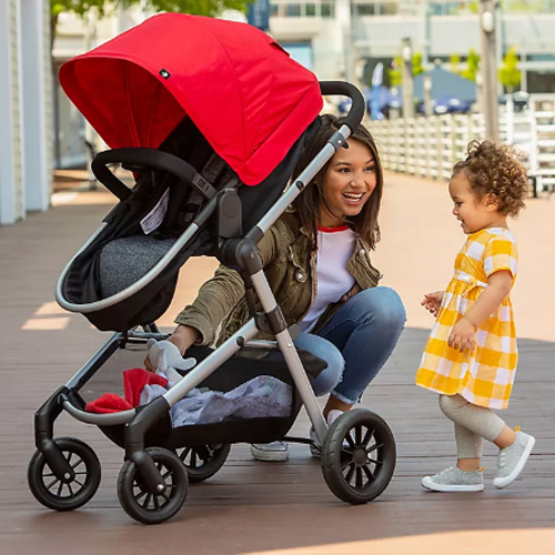 The car seat’s base installs in your car, while the seat clicks in and out so you can easily carry Baby to and from the vehicle. The seat also clicks into the stroller frame two different ways rear-facing or parent-facing for options. As your little one gets older, the stroller can be used without the carrier in multiple ways to get the ride that’s most comfortable. When it’s time to put the stroller away, it folds to a compact size that’s easy to store.