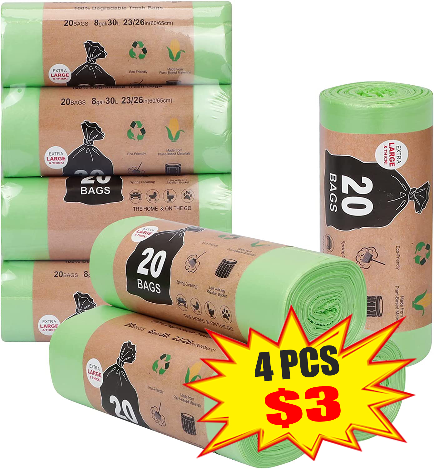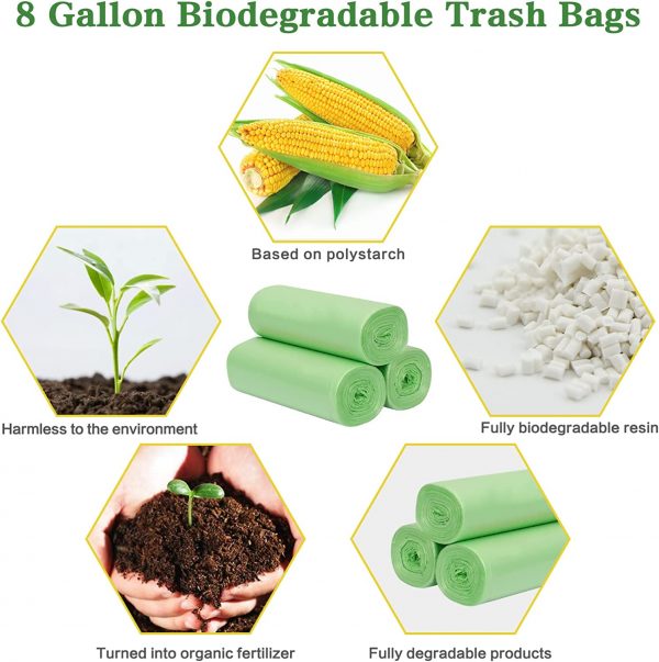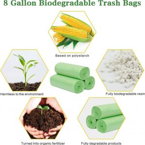 - [Biodegradable & Compostable]: The trash bag is made of corn plant starch material. It is biodegradable and compostable,which can reduce the human toxic footprint on the earth.Unlike packaging and plastics garbage bag.