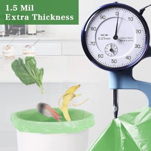 - [Extra Strong Thickness]The garbage bags is designed with extra strong thickness 1.5 Mil for a great heavy duty, do not leak or tear or rip. Easy to tear off and easy to open.