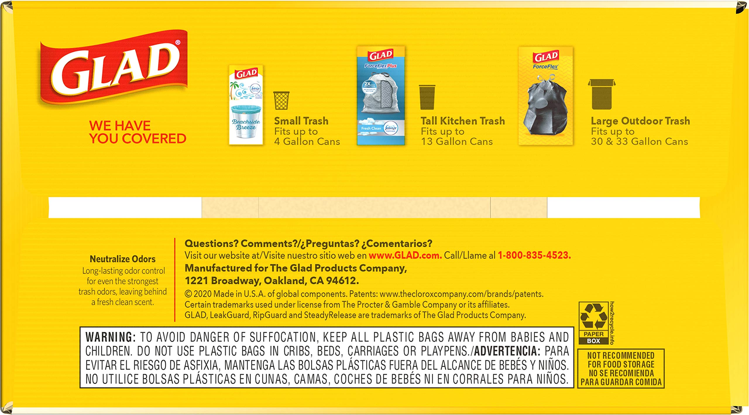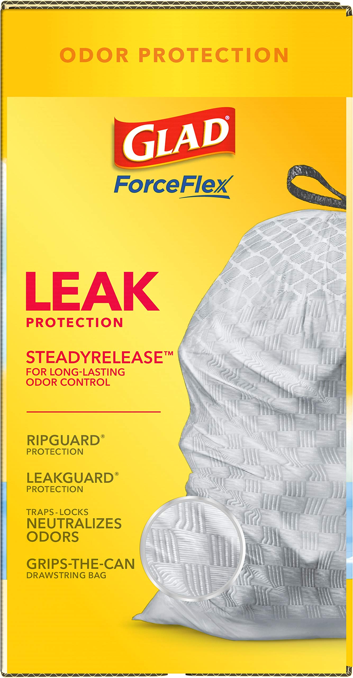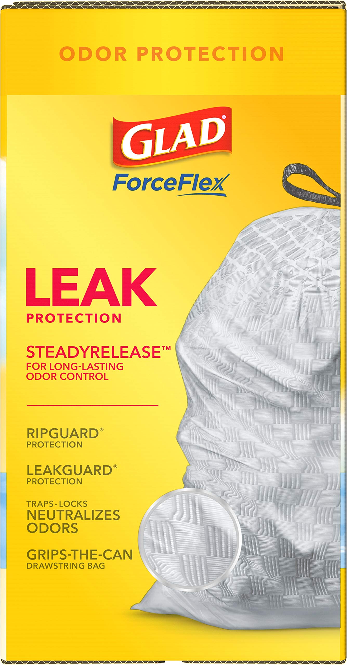 - FORCEFLEX TECHNOLOGY: Glad’s patented dual-layer protection is designed to give extra flex as it expands around sharp edges and heavy loads while resisting punctures, rips and tears