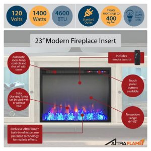 Step away from the ordinary and give your living room a modern makeover with the Fireplace TV Stand. Don??t let the simple look fool you, this stand comes with a 23?? electric fireplace insert with all the bells and whistles.