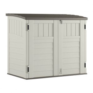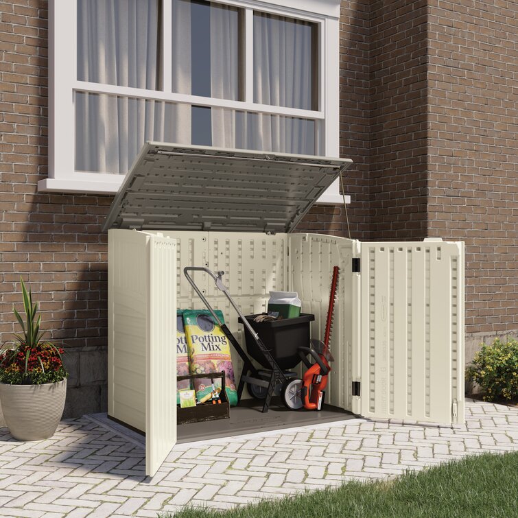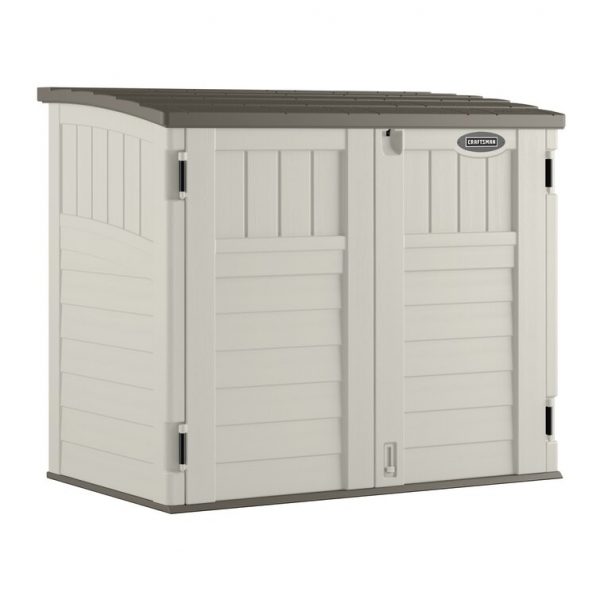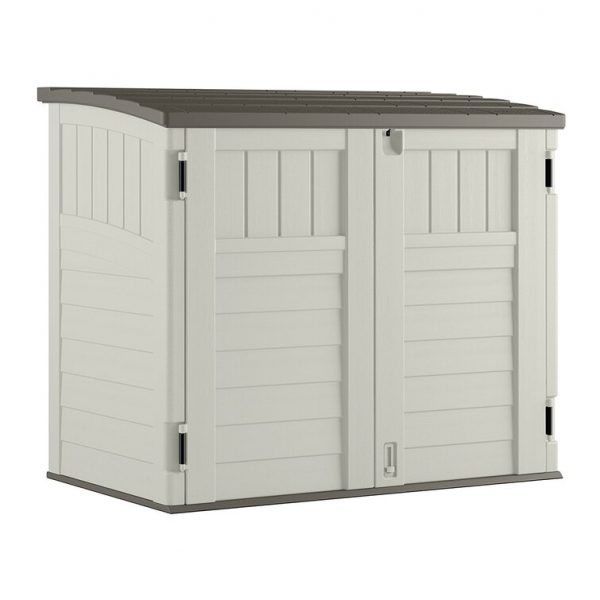 This handy Horizontal Storage Shed can handle any and all of your outdoor organizational needs. Ideal for stowing garbage cans, lawn and garden products, snow blowers, bicycles, and more, this stylish storage solution is essential in every season. Additional features include durable, multi-wall resin construction for year-round strength and stability, a reinforced floor for heavier items, a 3-door locking system for added security, and a sleek, low-profile design that fits neatly in many spaces.