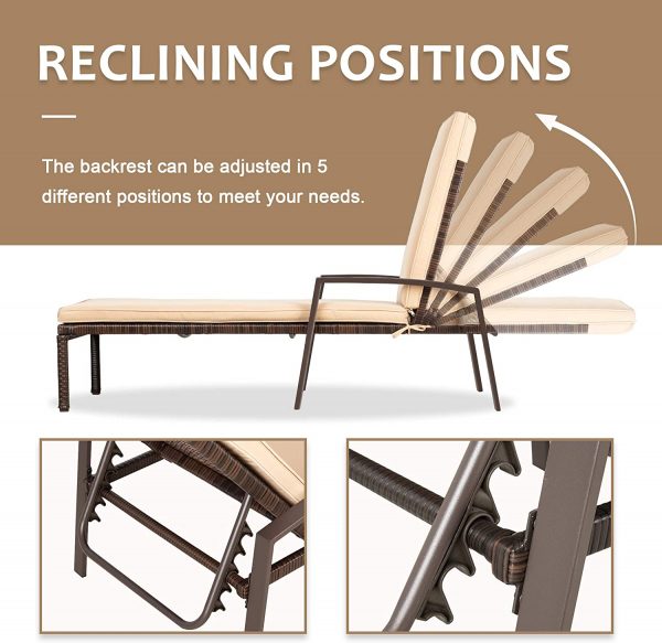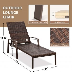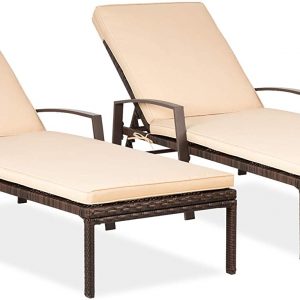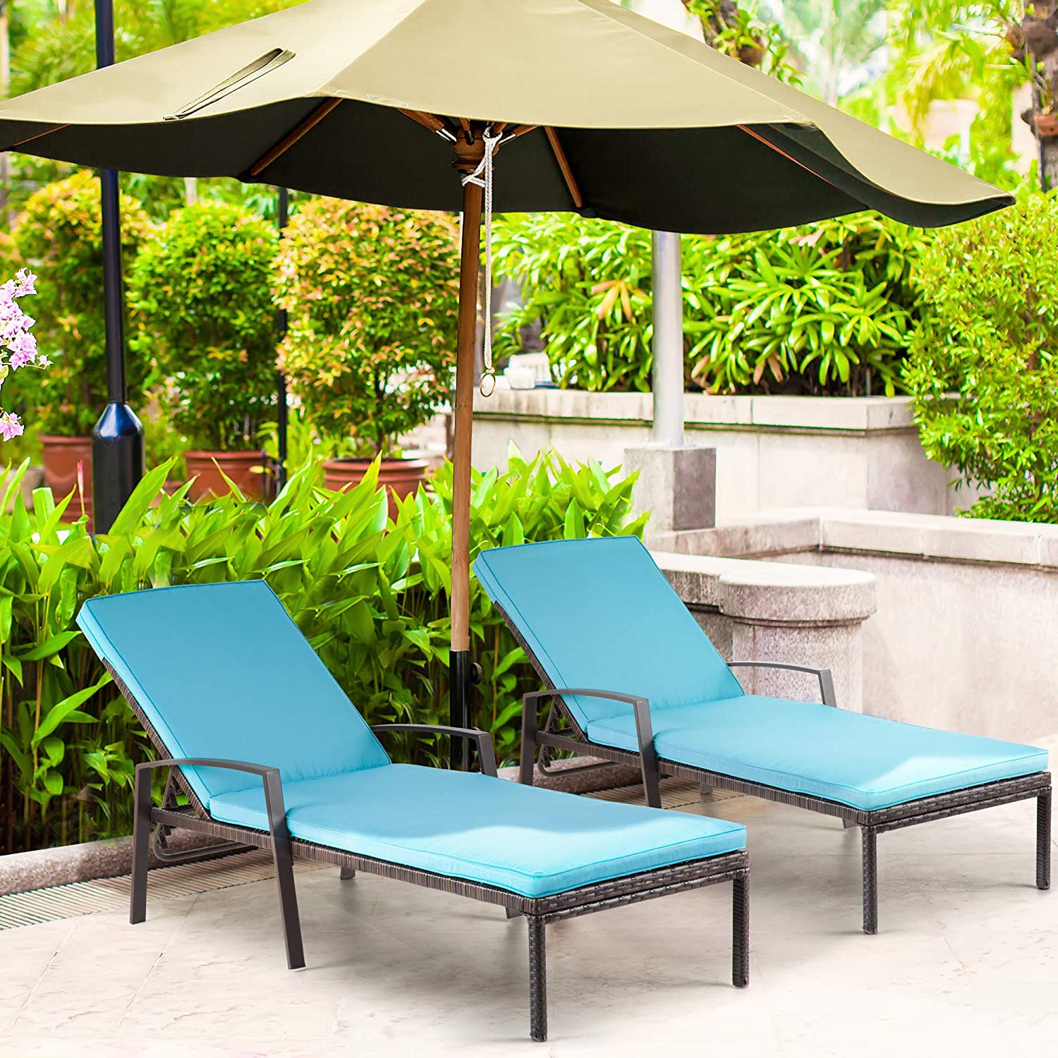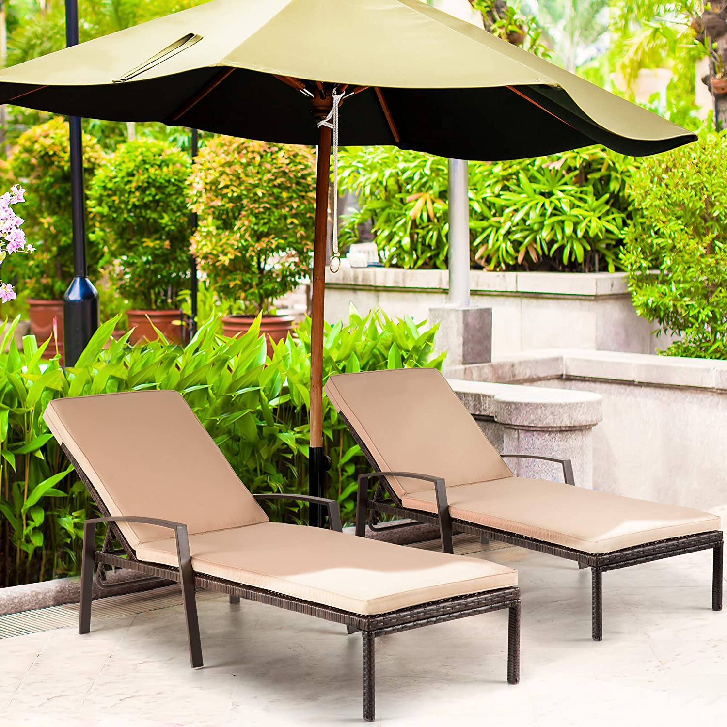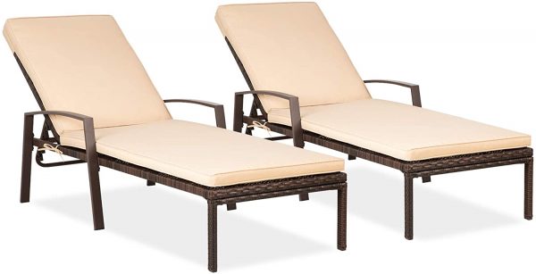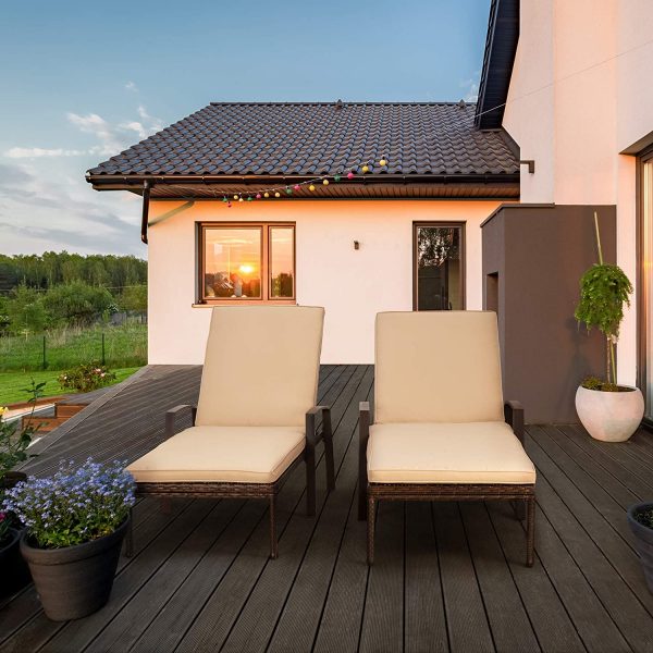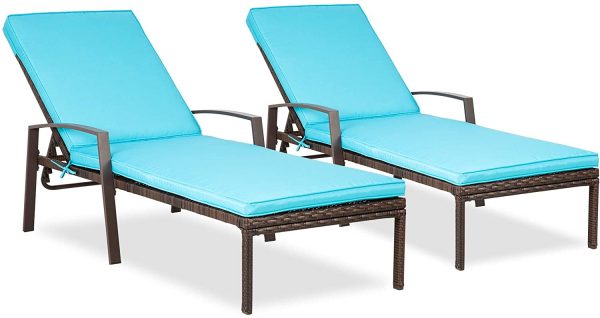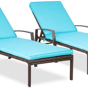 Pamapic Patio Lounge Chair Set 2 Pieces, Patio Chaise Lounges with Thickened Cushion