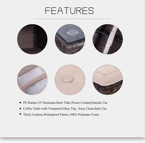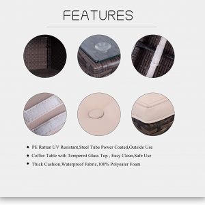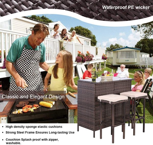 Washable CushionsRattan outdoor bar stools come with generous sized thick sponge padded seat cushions, water proof design save you from worrying about tipping. |