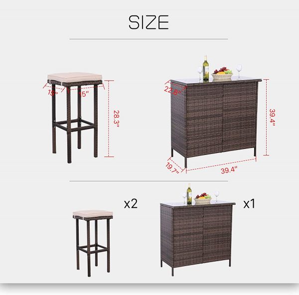 - Bar Table Size: 39.4″ x 22.8″ x39.4″(L x W x H)