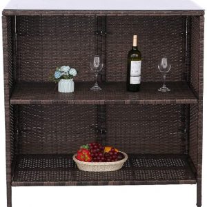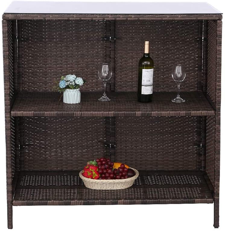 Elegant Glass TopBar table has a glass top for convenient placement of drinks on a flat surface, matches seamlessly with the brown wicker. |