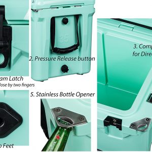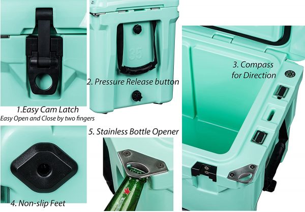 Thick foam insulation is always a key feature for longer ice retention time. Our coolers are with thicker insulation foam. The LLDPE plastic shells are very strong. We did a drop test from 3rd floor, the cooler didn??t get broken. This shows you how strong it is built.