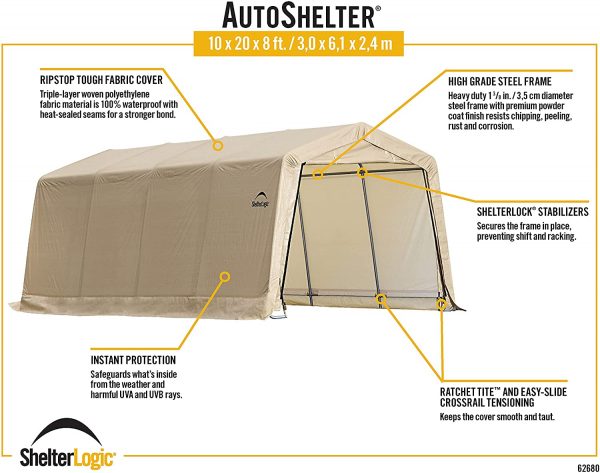 ShelterLogic 10?x 20 x 8 All-Steel Metal Frame Peak Style Roof Instant Garage