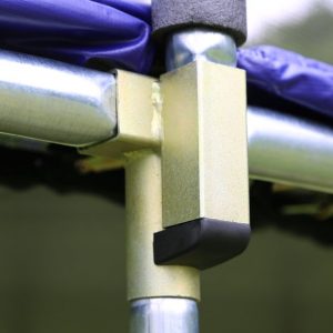 All Skywalker Trampolines frames feature reinforced T-sockets at each leg and enclosure joint, increasing frame stability and preventing structural twisting. The T-sockets are made of rust-resistant galvanized steel, extending the life of your trampoline and making assembly easier.