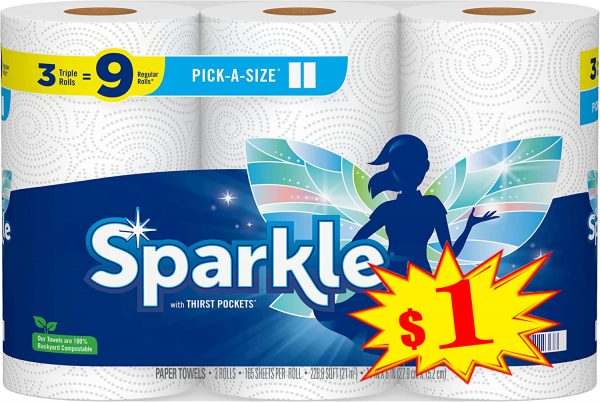 24 reviews for Sparkle® Pick-A-Size® Paper Towels, 3 Triple Rolls = 9 Regular Rolls