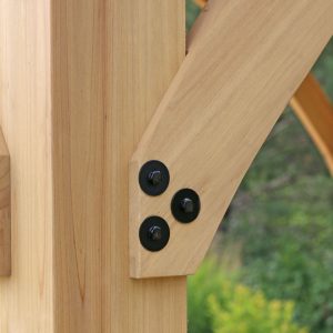 - Finished in a natural cedar stain and neutral coffee brown roof